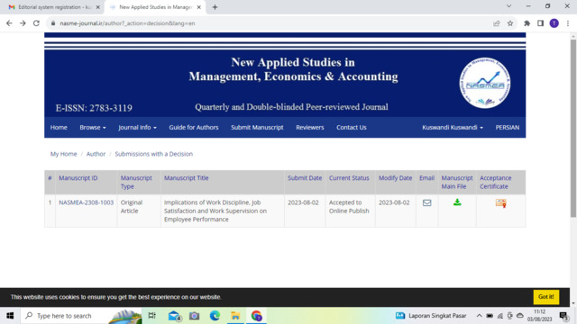 KUSWANDI, KUSWANDI (2023) Implications of Work Discipline, Job Satisfaction and Work Supervision on Employee Performance. NASMEA, 6 (2). pp. 7-16. ISSN 2783-3119